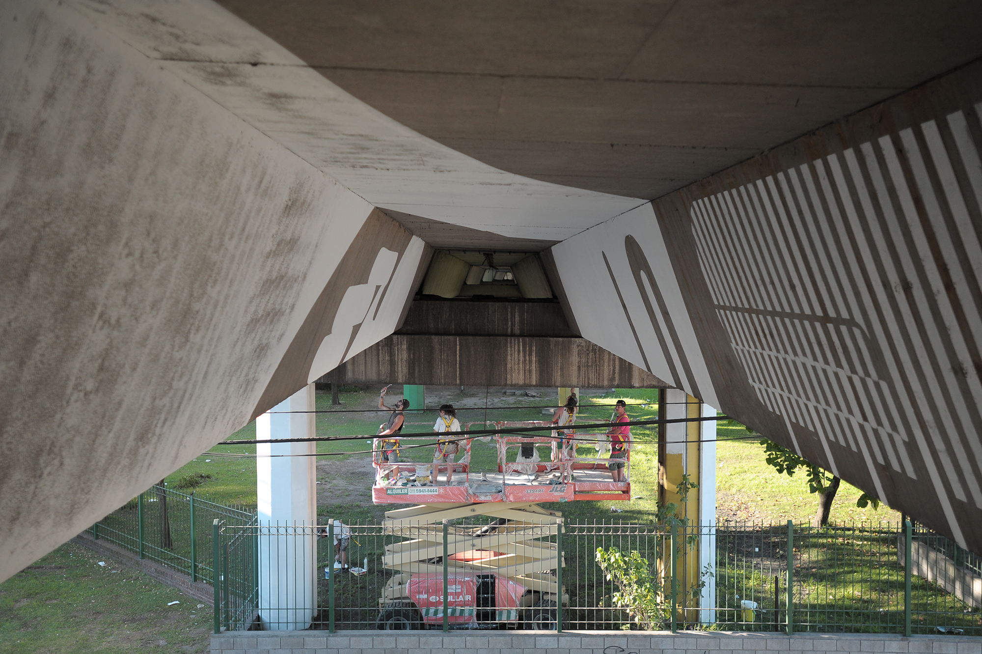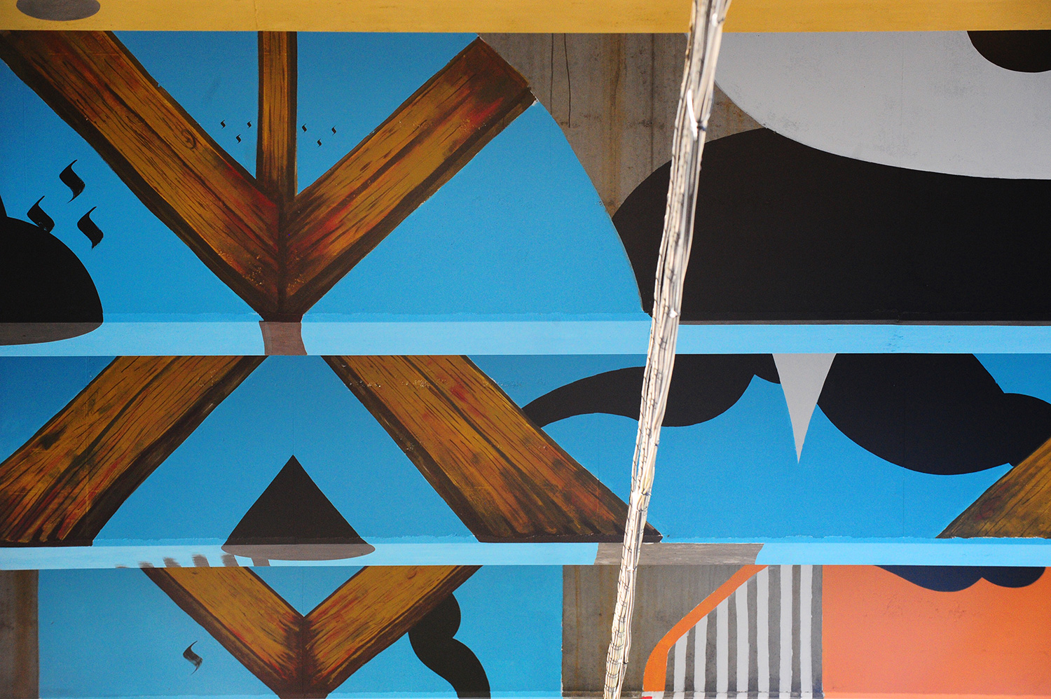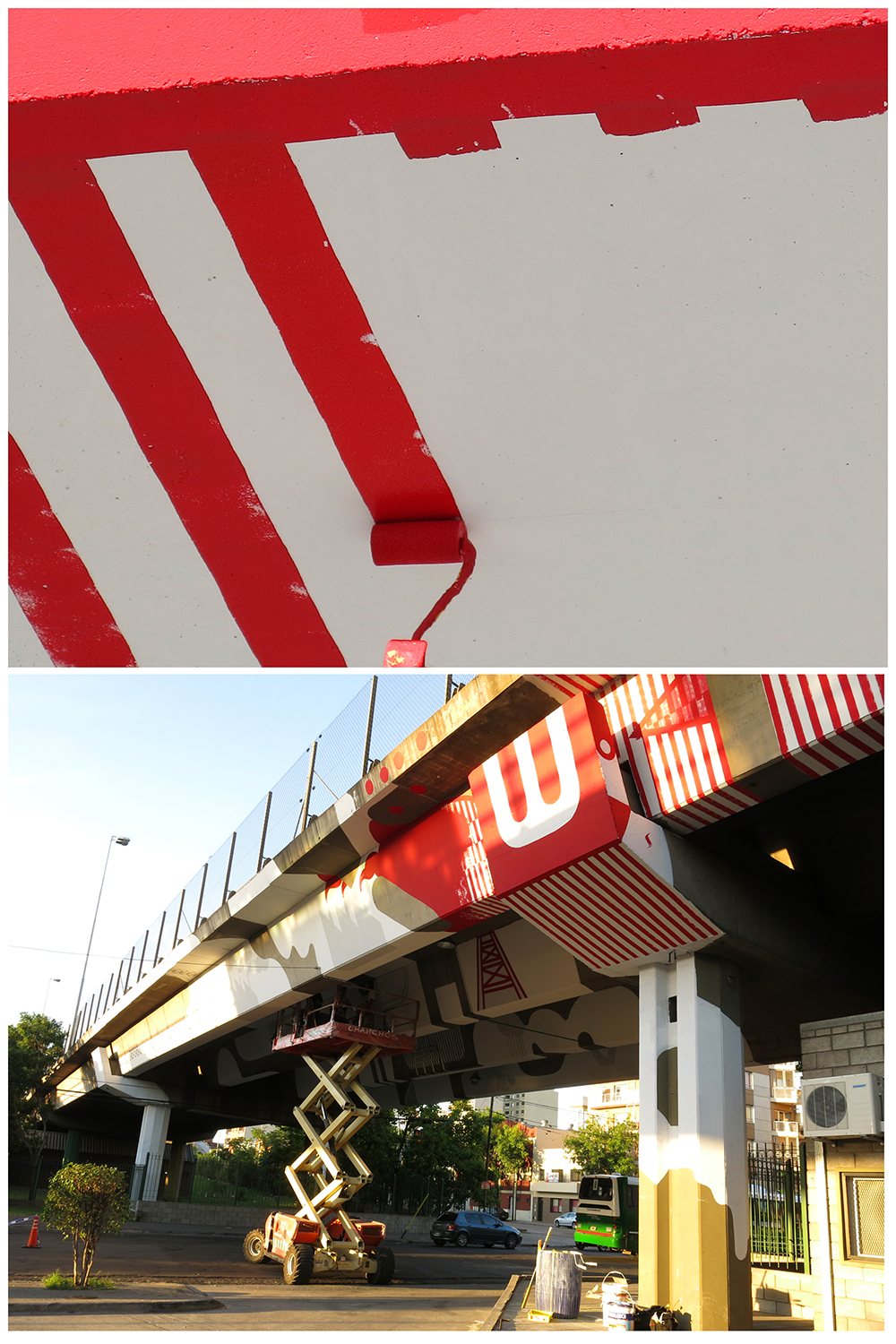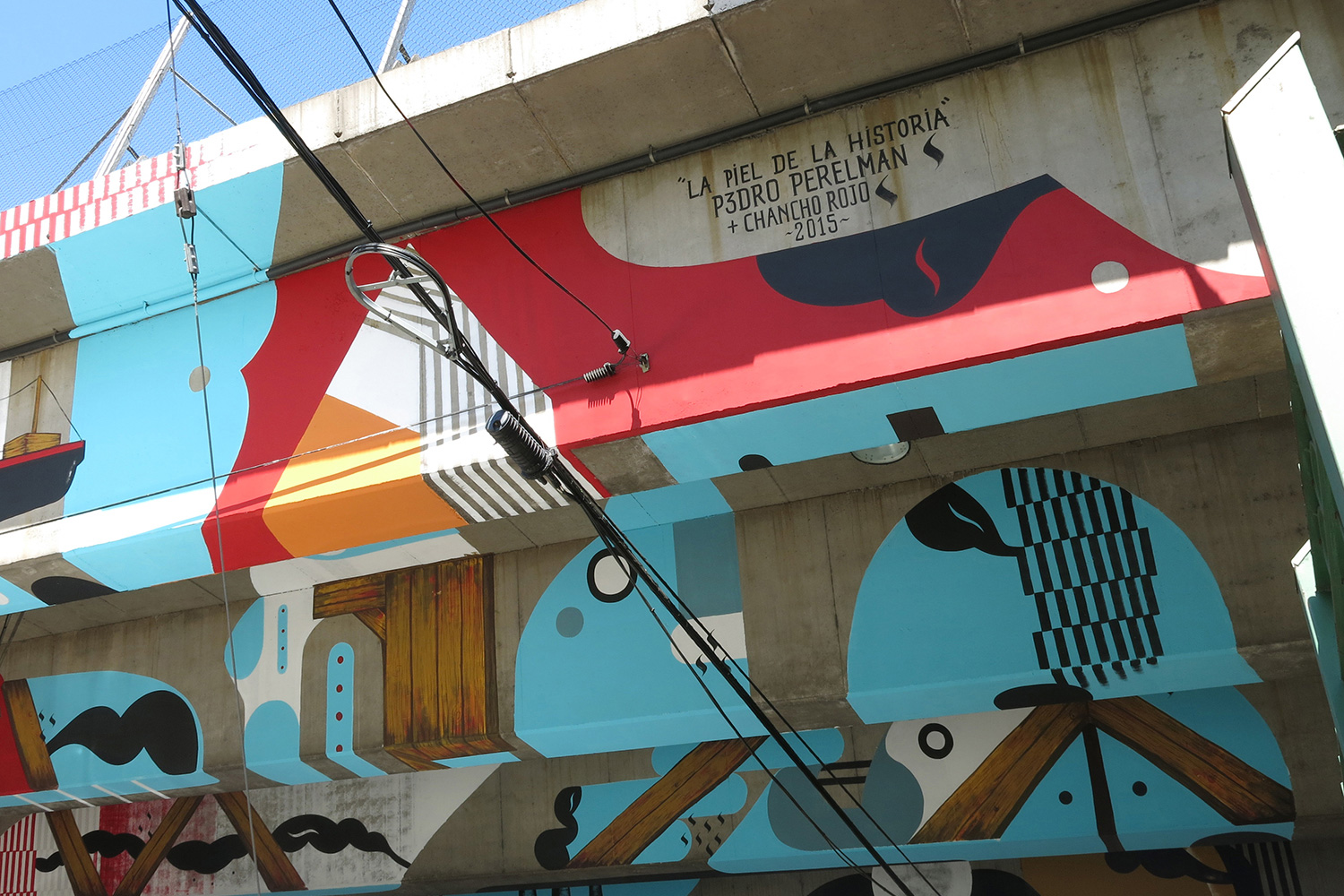 “La Piel de la Historia” Pedro Perelman + Chancho Rojo ( Luciano Iannuzzi – Agustin Basail – Joaquin Diez – Joaquin Longinotti )Febrero 2015. Concurso CMD / Intervención Bajo Puentes 9 Julio Sur . California 1800 – Barracas – Buenos Aire Apoyo: Sinteplast / Sullair Argentina / fotos: Martin Tibabuzo / Gracias: Ezequiel Andujar / Anahi Traba / Andrea Font / Eliana Goncalves / Analía Mastroberti / Facundo Farrace / Luis Haas / Trimarchi / Pablo Pacheco / Comuna 4 / Vecinos de Barracas / Nicolás Recart / Martin Tibabuzo / Julia Sol Gersberg / Adriana Margarucci / Sofia Rolleri / Silvia Troian / Laura Salles / Valeria Garcia / Comisaría 30 / Gracias Barracas!