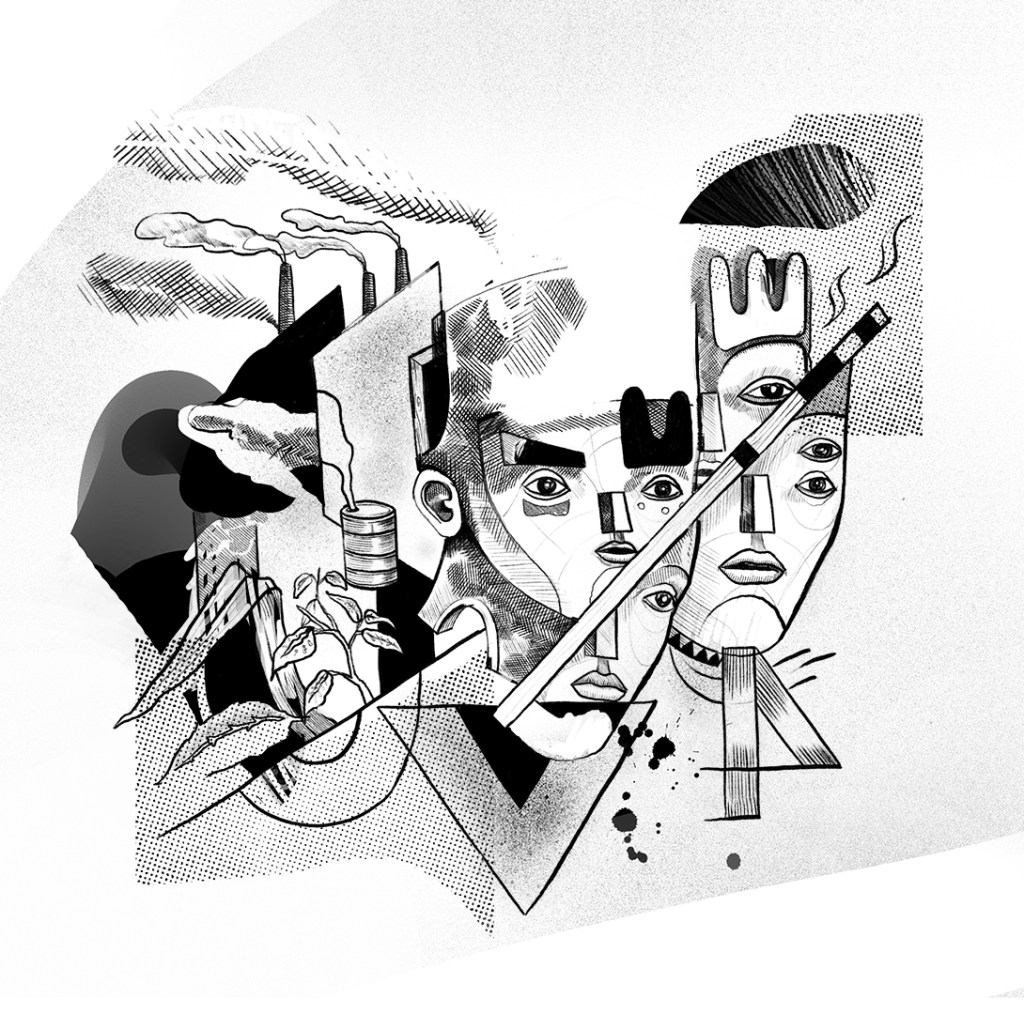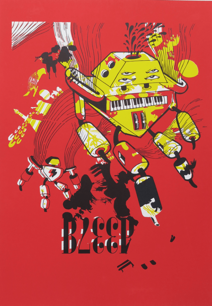 Deconstrucción, serigrafía 35×50, 2017Awake, ilustración digital para vinilo de Kermesse, 2020
